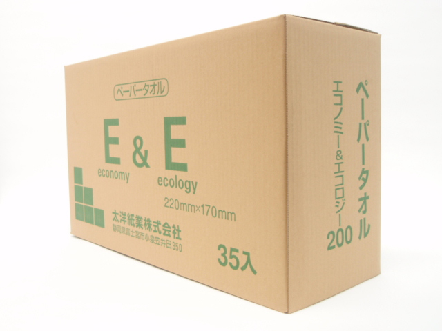 再生紙100%のペーパータオル。ハードタイプで厚めの紙なので十分に拭けます。省資源タイプのエコノミーサイズ。
